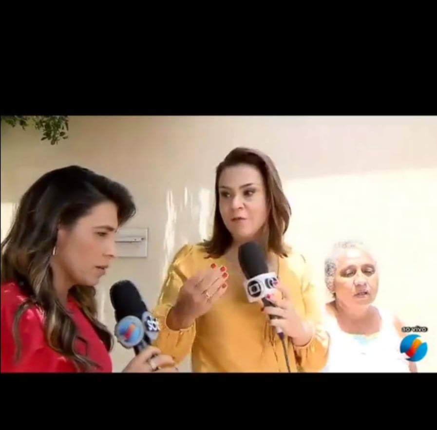 Em uma entrevista ao vivo na cidade de Bela Vista de Goiás, nesta quinta-feira (20), sobre a morte da gerente de um hipermercado, Fernanda Souza Silva, 33 anos, as repórteres da TV Anhanguera Patrícia Bringel e da TV Serra Dourada Rozaine Ferraz se desentenderam na condução da matéria com a entrevista com familiares da vítima fatal. Tudo porque a repórter da TV Serra Dourada queria pegar uma “carona” na entrevista da colega da TV concorrente. O “barraco” foi mostrado pelos apresentadores do Jornal do Meio-Dia, Jordevá Rosa e Luciana Finholdt, que lamentaram o ocorrido.