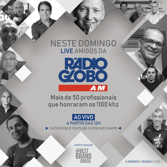 Em homenagem aos ouvintes, que bateram tantos recordes de audiência, mais de 60 comunicadores que passaram pela emissora vão participar de uma Live para contarem algumas histórias inesquecíveis e curiosas da frequência AM 1100 KHz. A Live “Amigos da Rádio Globo” vai acontecer no mesmo dia em que Rádio, que agora opera somente na FM 94,1 MHz, chega ao fim.