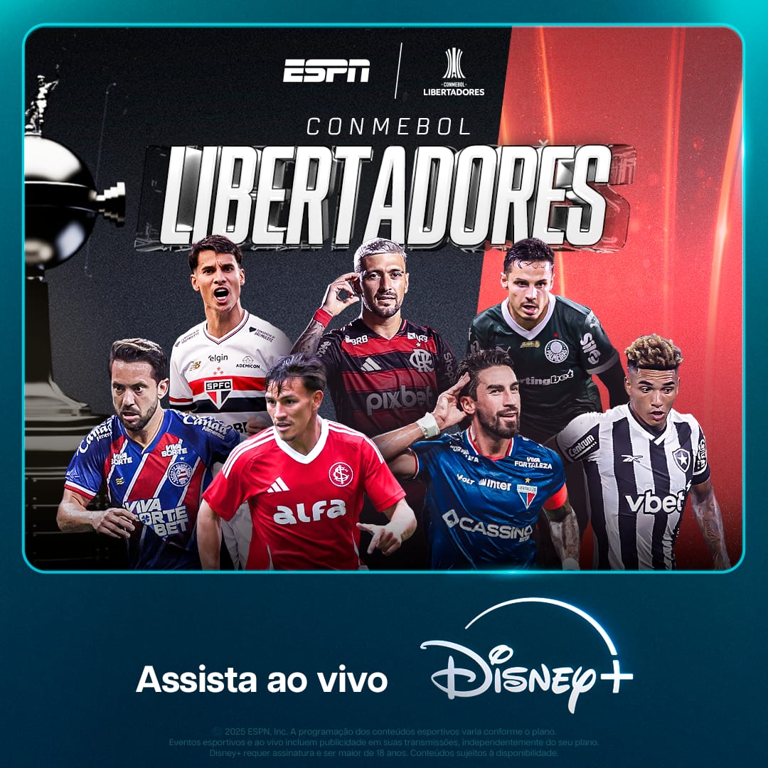 A semana será de fortes emoções na ESPN e no Disney+, com a transmissão ao vivo dos jogos da quarta rodada da fase de grupos da CONMEBOL Libertadores. Quatro grandes clubes brasileiros entram em campo em busca de pontos fundamentais na luta pela classificação às oitavas de final. As plataformas Disney exibirão com exclusividade os jogos de Botafogo, Internacional e São Paulo, e a partida Cerro Porteño e Palmeiras terá transmissão para todo Brasil.