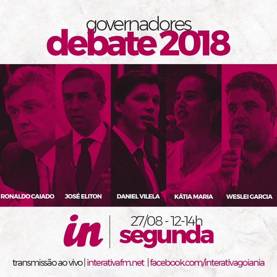 Acontece nesta segunda feira (27) o debate entre os candidatos a governador do estado de Goiás, na Rádio Interativa FM 94,9. O confronto terá início ao meio-dia, com lives no site da rádio e no.