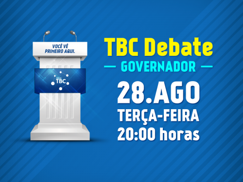 A nova TBC vai realizar o primeiro debate na TV entre os candidatos ao governo do estado. Será na terça-feira (28), às 20h, com transmissão ao vivo. O apresentador Enzo De Lisita​ e jornalistas convidados.