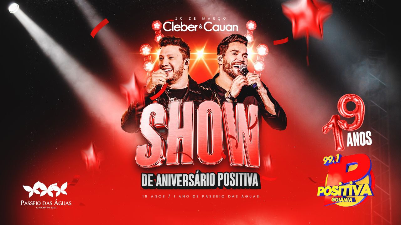 Positiva FM comemora 19º aniversário e 1 ano no Passeio das Águas Shopping com show de Cleber & Cauan
